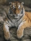 A Siberian Tiger Rests on a Rock in an Outdoor Enclosure Stretched Canvas Poster Print by Joel Sartore, 12x16 |